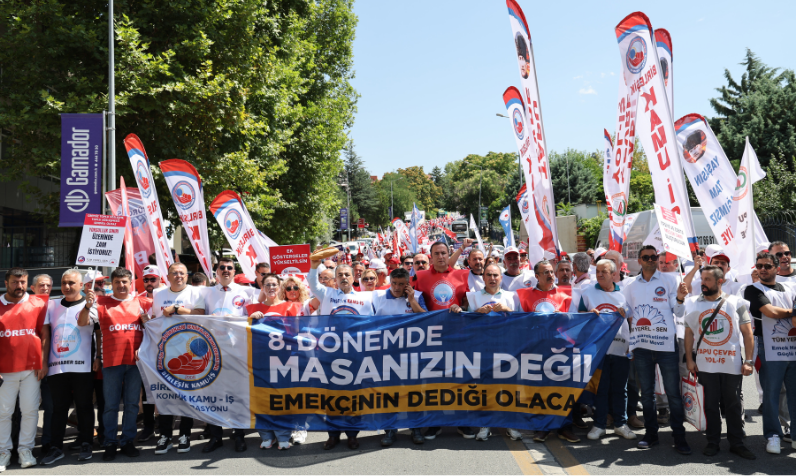 شهد الأسبوع الماضي سلسلة احتجاجات وإضرابات نظمتها النقابات في مختلف المدن. اتحاد نقابات موظفي القطاع العام (KESK) قاد مسيرة إلى وزارة العمل والضمان الاجتماعي في أنقرة، مندداً بإحالة النزاع إلى التحكيم باعتباره “تقييداً لحقوق العمال” نظراً لأن الحكومة تتحكم في تركيبة الهيئة. وشارك في التحرك ذاته اتحاد Birleşik Kamu-İş وعدة تنظيمات أخرى مثل BASK، DMK، HAK-SEN، YURT-SEN وASİM-SEN، فيما نظم اتحاد “Memur-Sen” واتحاد “Kamu-Sen” فعاليات احتجاجية منفصلة.