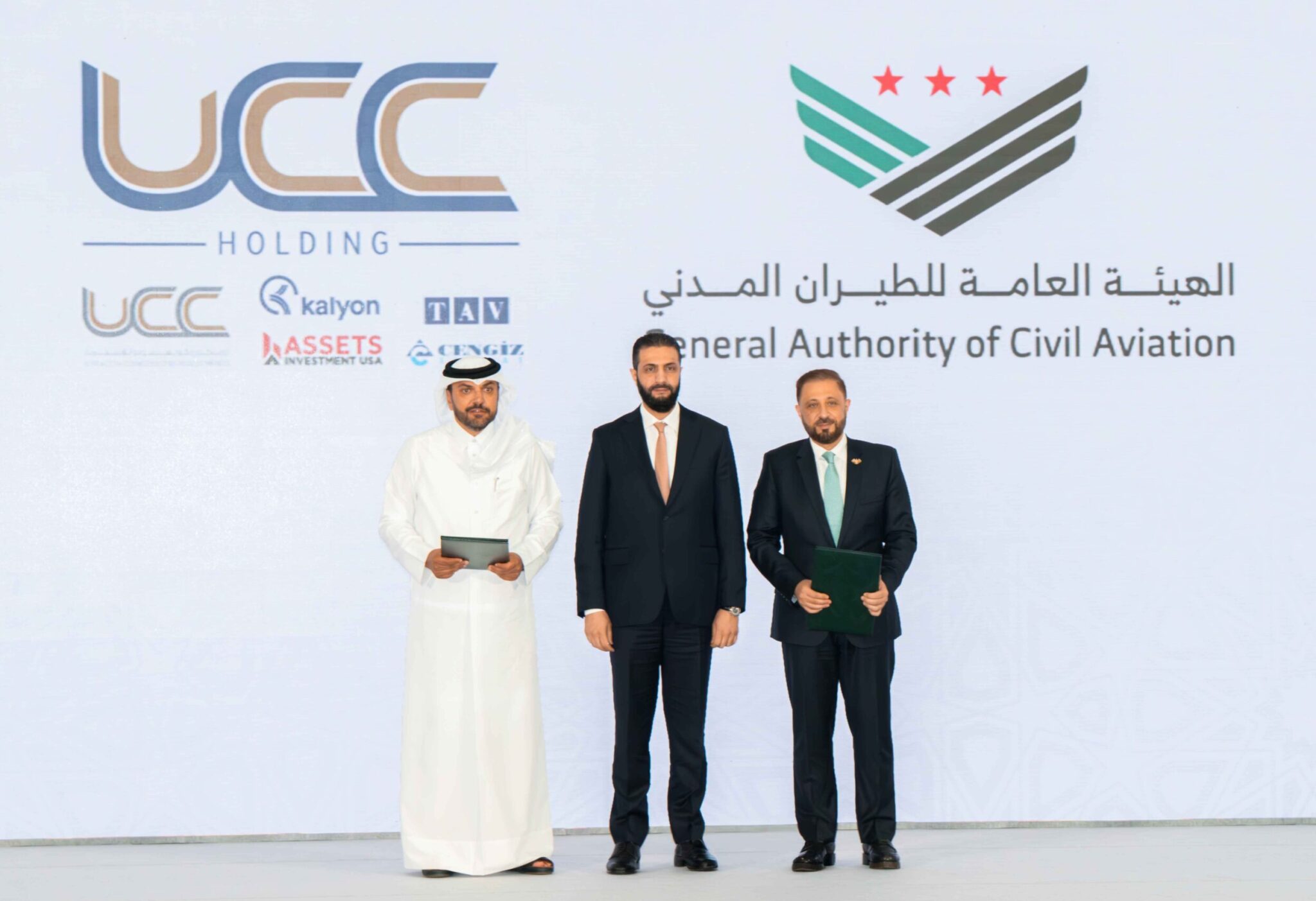 أعلنت شركة UCC Holding القطرية، توقيع مذكرة تفاهم بقيمة4 مليارات دولار بين ائتلاف استثماري تقوده قطر ويضم شركات تركية، منها كاليون القابضة، وجنكيز القابضة، ومطارات تاف، مع الهيئة السورية للطيران المدني، لتطوير وتوسعة مطار دمشق الدولي.