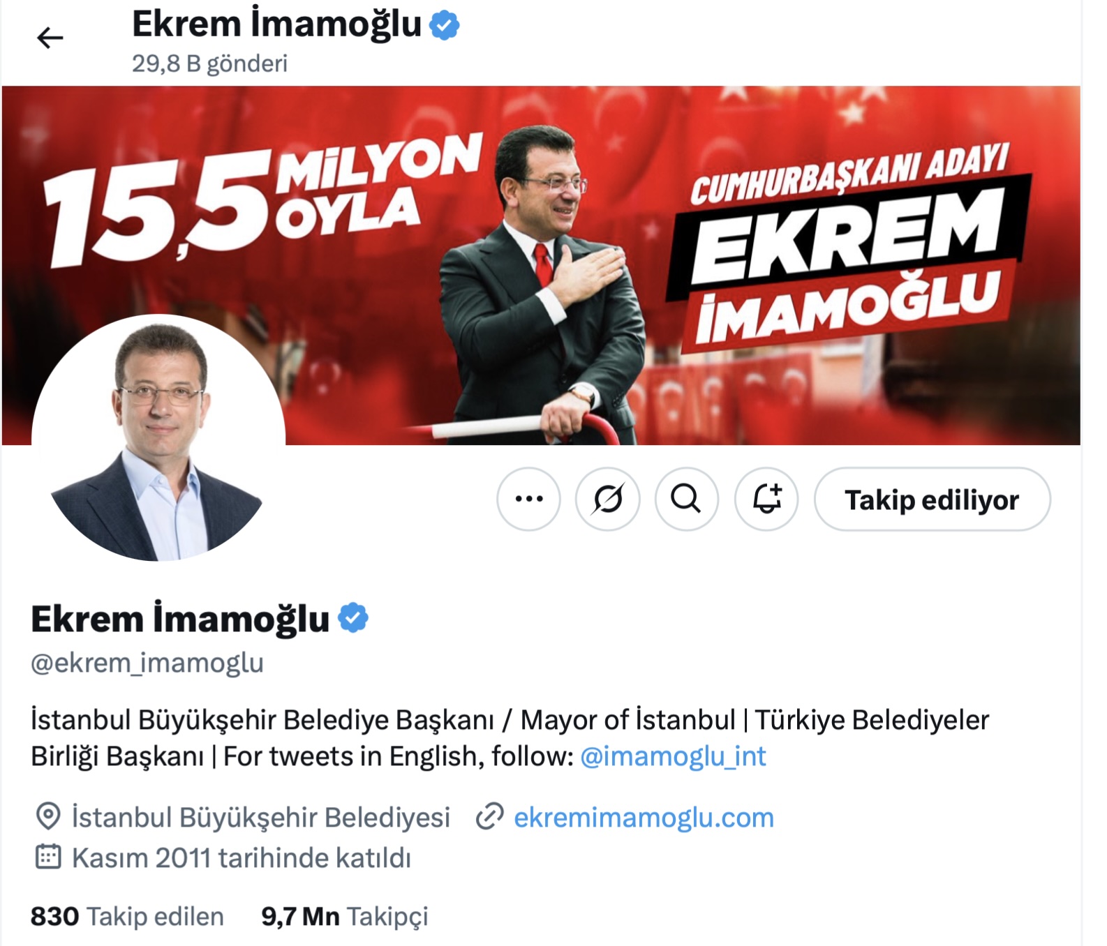 Türkiye Today's > سياسة > حجب حساب إمام أوغلو على منصة “إكس” في تركيا