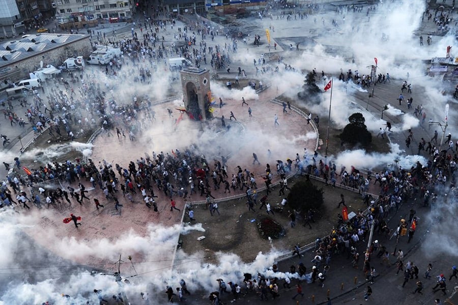اندلعت احتجاجات غيزي بارك في صيف 2013، اعتراضًا على مشروع تطوير حضري في وسط إسطنبول، يتضمن بناء متاجر وثكنة عسكرية في منطقة خضراء، وسرعان ما انتشرت إلى مدن أخرى، مما شكل تحديًا كبيرًا لحكومة حزب العدالة والتنمية آنذاك، وبادرت السلطات إلى قمعها بعنف، ليصفها أردوغان لاحقًا بأنها “محاولة انقلاب” ضده، أو تحرك شعبي ثوري على غرار ثورات ما سمي بـ”الربيع العربي” تقف وراءها قوى خارجية.
